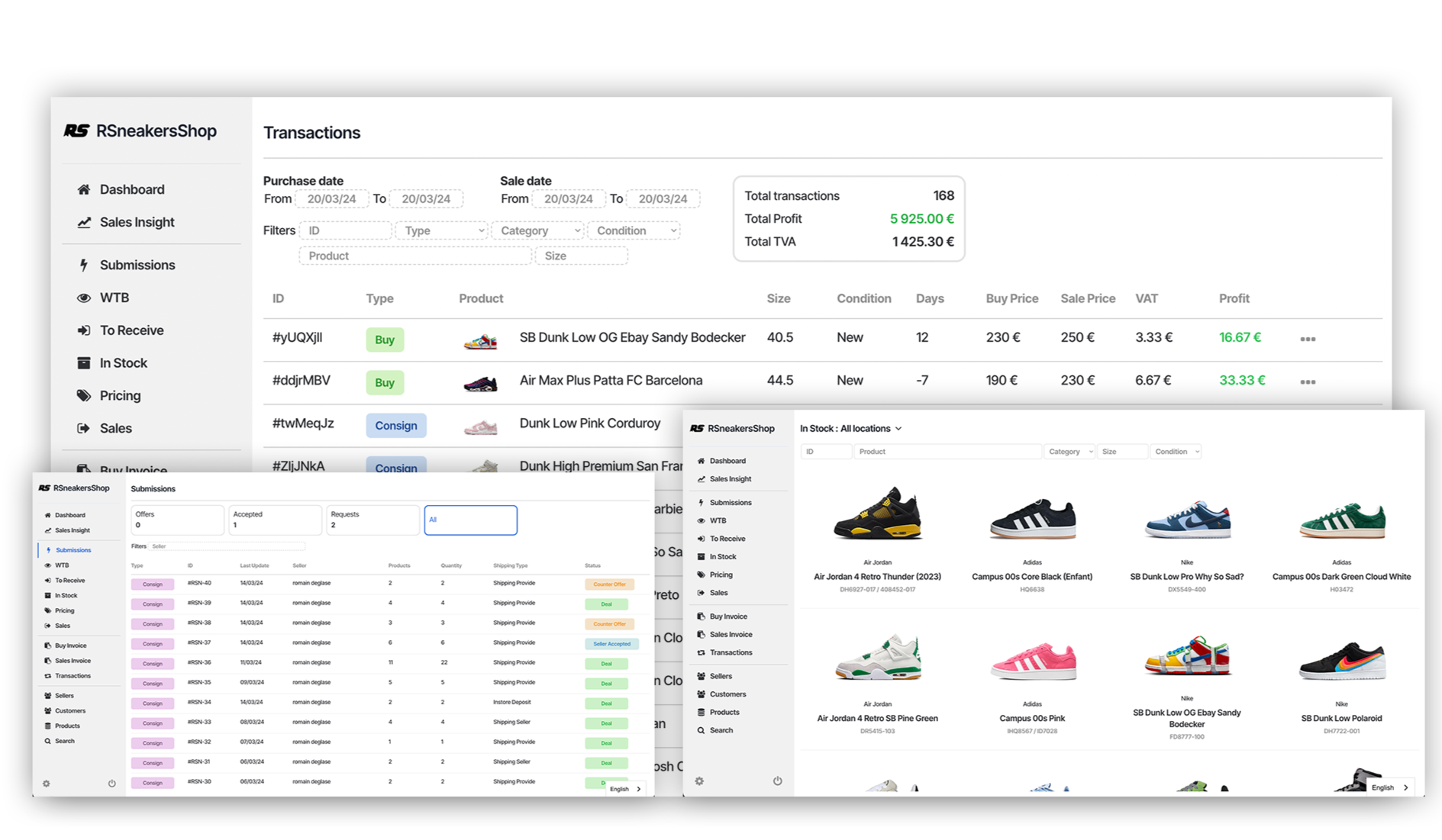 Track purchases, sales, inventory and consignments with our management system while also managing invoices and your seller offers with our submission management system.
