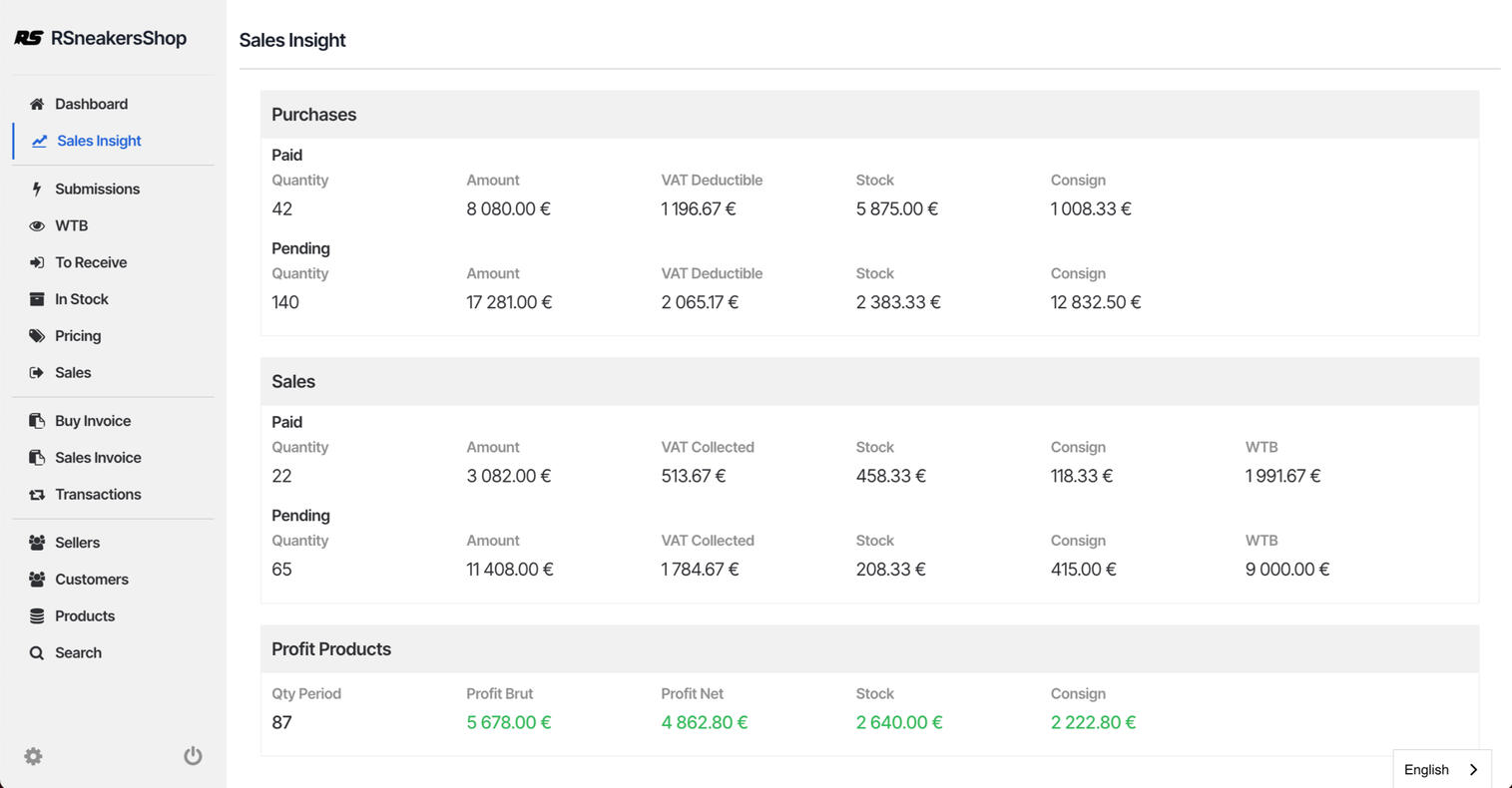 Want to know how much average profit per product you made this week? Want to know how much VAT you must pay in March? Let our dashboard calculate and show you that, access all your business analytics.