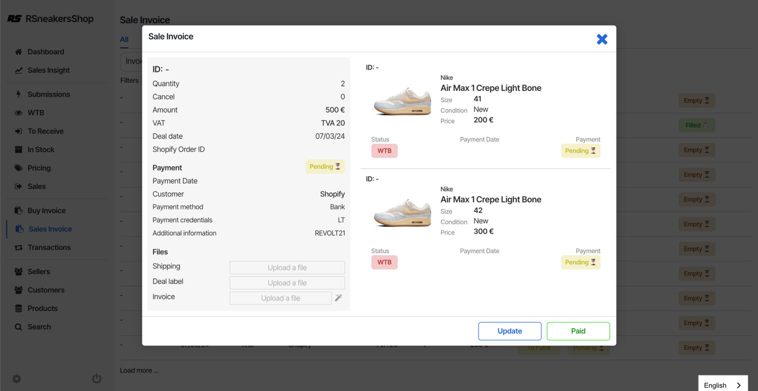 Simplify your sales management, make unit or bulk sales, link your sales to your purchases, generate your personalized invoices and alert your depositor sellers, all this automatically, it's easy !